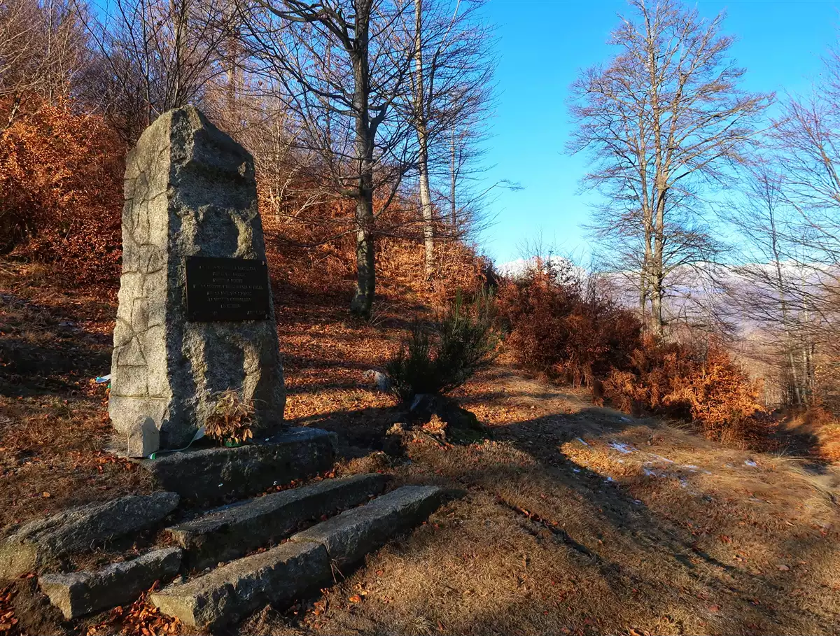Prima di arrivare in vetta, di fronte al Rifugio Marco Primatesta, il cippo, a ricordo dei caduti durante la Resistenza