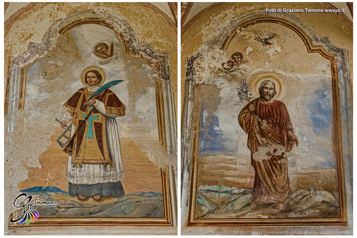 Affreschi nella chiesa di S. Anna. A sinistra San Lorenzo Martire, a destra San Giuseppe. Foto: Graziano Tamone